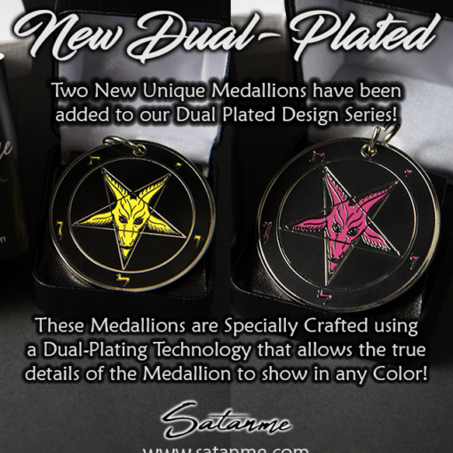New authorized Sigil of Baphomet Medallions by Satanme. Welcome “Evening Light” & “Evening Pink” To our Unique Dual-Plated Medallion Series! Now Available!