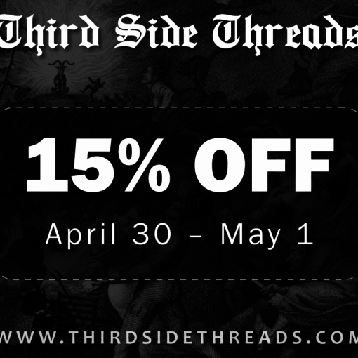 Third Side Threads – Walpurgisnacht Sale On April 30th and May 1st customers can receive 15% off all men’s/women’s clothing and accessories at Third Side Threads. Browse our large selection of Satanic products or customize your own! www.thirdsidethreads.com