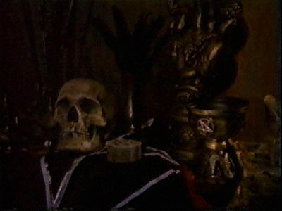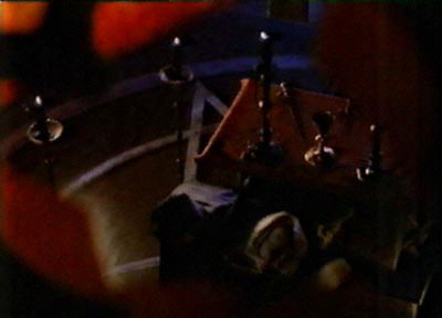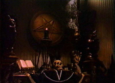 The altar had quite a fine version of the Baphomet, which lit up in anger, then burst into flames, when the ritual chamber was invaded by the good witch and her wimpy boyfriend.