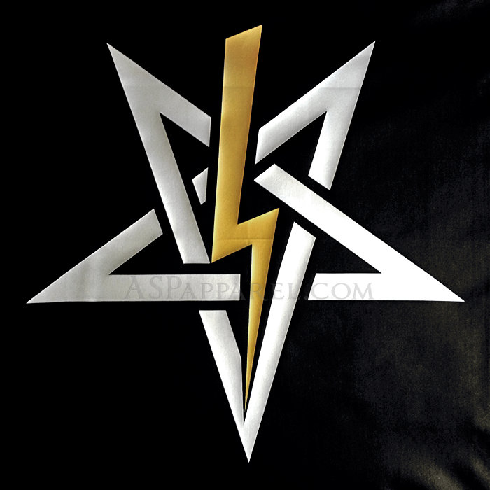 Reverend Ashley S. Palmer prints this special edition banner flag in metallic silver & gold in keeping with the tradition of Dr. LaVey’s personal pendant and Magus Gilmore’s 6-6-6 Satanic High Mass chasuble. Other print and fabric colour combinations are also available here.