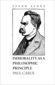 His article “Immorality as a Philosophic Principle” is reprinted here in facsimile from the July 1899 issue of The Monist. In it, Carus introduces the reader to Nietzsche’s ideas and this “aristocratic individualism”. “It is a consistent anarchism, a courageous immoralism, and a proud aristocratism, the ruthless shout of triumph of the victor who hails the doctrine of the survival of the strongest and craftiest as a ‘joyful science.'”