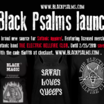 We are pleased to introduce BLACK PSALMS Apparel, an outlet for Satanic related shirts and other items of interest. BLACK PSALMS is a licensed dealer of The Electric Hellfire Club’s shirts and, soon, medallions. For our launch, we are offering 15% off at checkout with the code 15off18.