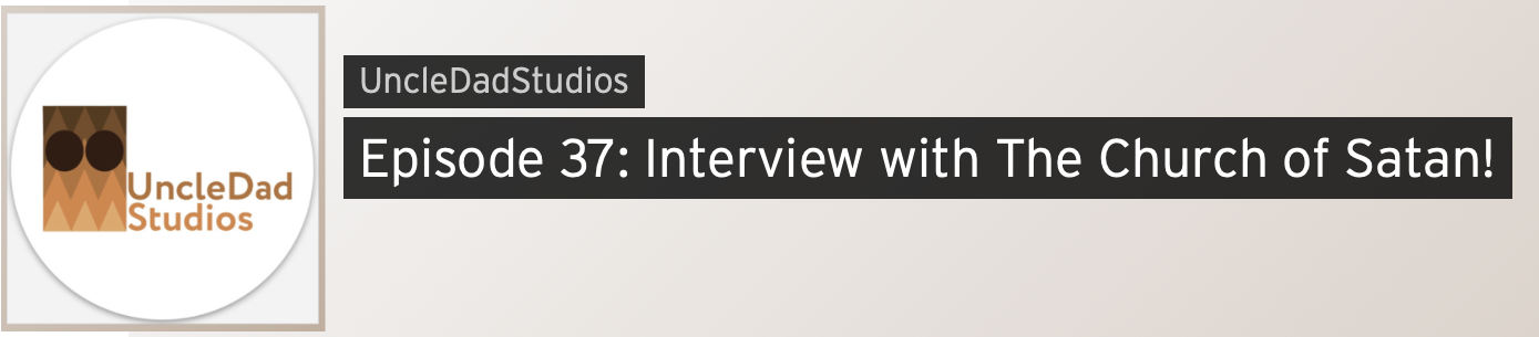 Church of Satan on UncleDadStudios Published May 22, 2021 This week UncleDad and Mike talk with Magister Bill M. of the notorious Church of Satan. Enjoy this discussion on SoundCloud. TweetMore Click to print (Opens in new window) Print Click to email a link to a friend (Opens in new window) Email
