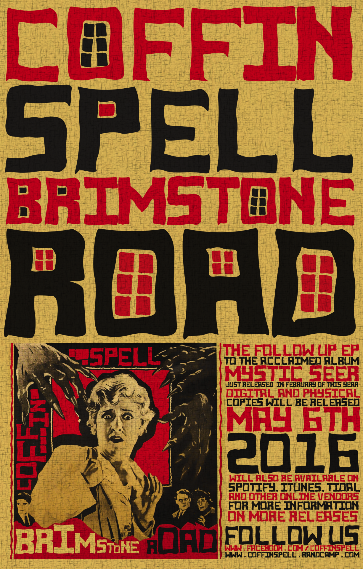 Coffin Spell is happy to announce the release of “Brimstone Road”, a 6 song companion EP to our acclaimed album and book “Mystic Seer” released in February of this year. It is available to purchase on our bandcamp page as of May 5th and will become available on iTunes, Spotify, and most other digital outlets and streaming services on May 6th.