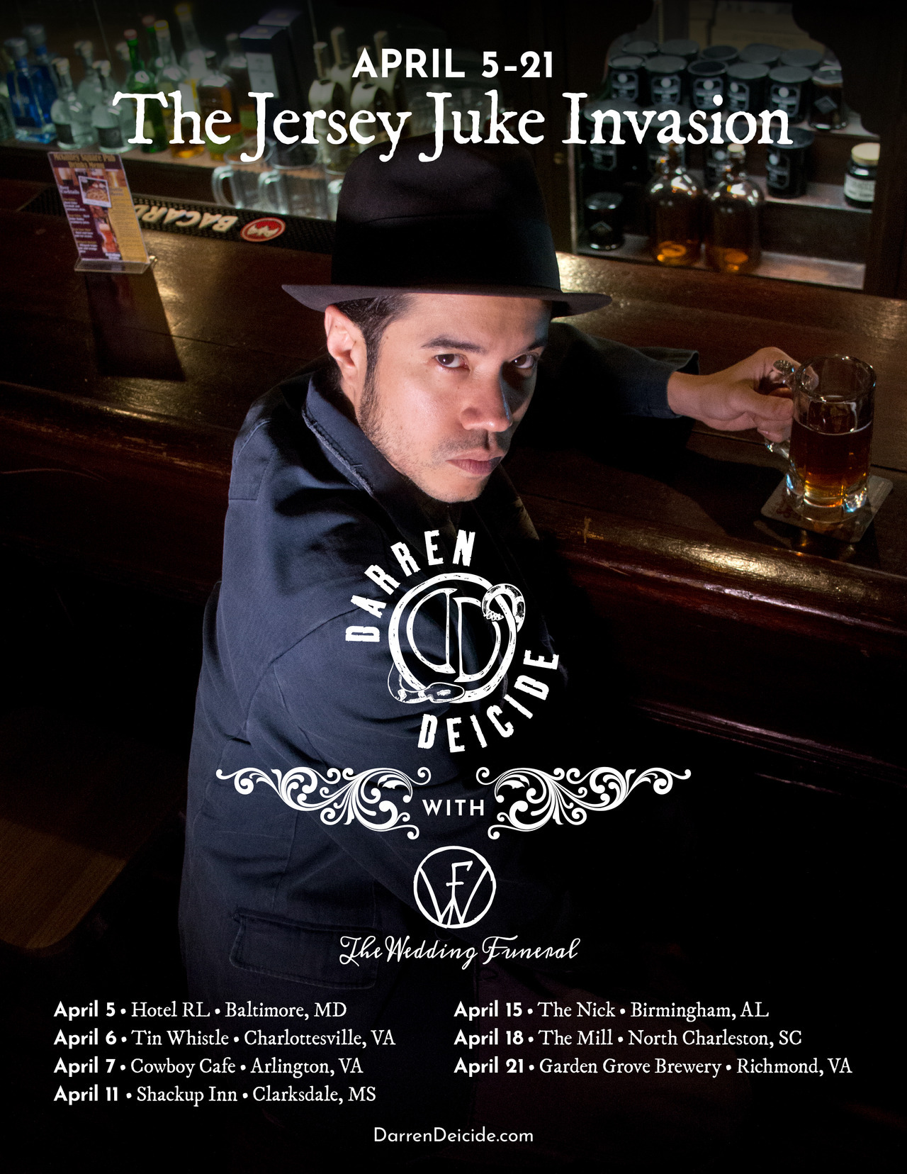 a full schedule of show details, visit darrendeicide.com and