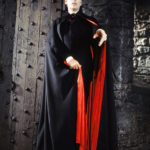 Most indelibly for me was Lee’s personification of Count Dracula in the wonderfully lurid films produced by Hammer Studios. While he played Frankenstein’s monster first for their revival of the earlier Universal icons, he became Stoker’s immortal aristocrat in 1958 with an extraordinary performance. When Dracula first appears to Jonathan Harker, who is a deputy tasked with investigating outbreaks of vampirism by Van Helsing, Harker—as well as the audience—was surprised to be greeted by an articulate, intelligent man who seemed far from being some monstrous blood-sucker. However, soon enough Harker would see the beast unleashed as the elegant, black-draped count confronted him as a snarling savage bearing feral fangs, face smeared with blood. The contrast between controlled stillness and raging animal fury exemplified Lee’s interpretation of the vampire count. While he could speak with resonant eloquence and act as a monolithic masculine presence, seducing his female victims with a dominant glance or a commanding gesture, when enraged he was fury unbounded. In his second Hammer film, DRACULA, PRINCE OF DARKNESS, he is an eidolon of vampirism, uttering no dialogue. He did not require any to be the incarnation of the king of the vampires.