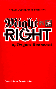 Might is Right by Ragnar Redbeard is probably one of the most inflammatory books ever written, so who better to write an introduction? It was only natural that I excerpted a few pages of it for The Satanic Bible. The book has been so indelibly linked with me, it was felt that any new edition should have my name on it. I am pleased with the new printing. The afterward is befitting the impact the book had upon George Hawthorne, a reader already predisposed to that kind of presentation. The editor’s notes made my Ms. Lane astutely reveal aspects I had not considered. The possibility of two distinct authors, in light of my own observations, makes perfect sense, though I am not qualified to hazard a guess as to who the other might be.