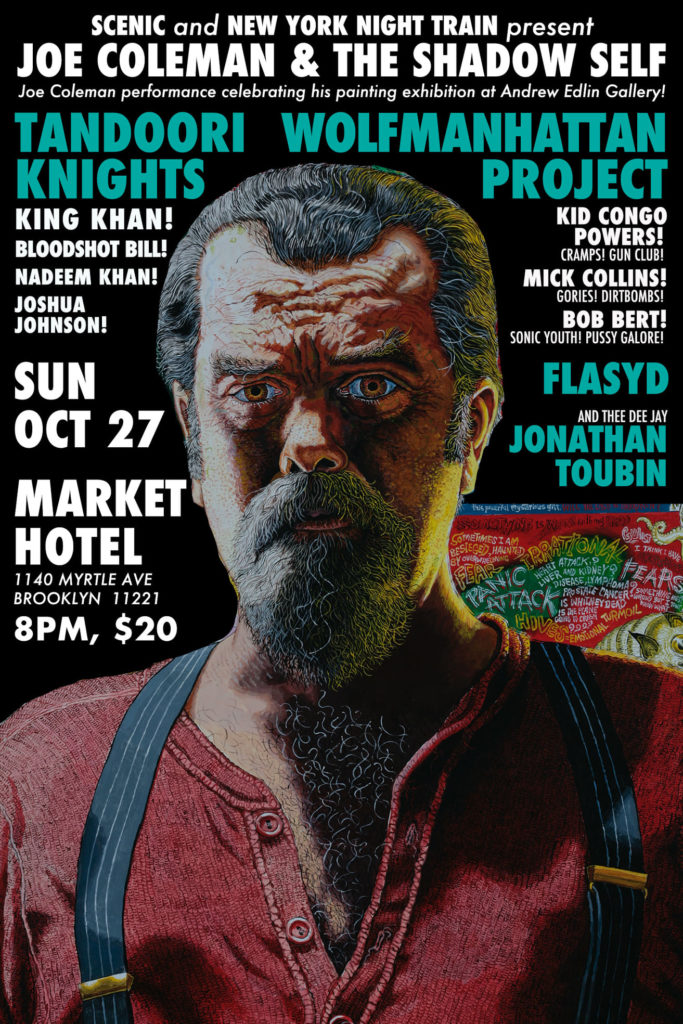 Tonight we celebrate the opening of iconic painter/performance artist JOE COLEMAN’s exhibition at Andrew Edin Gallery with a rare night of music from his friends and fans from around the world! JOE COLEMAN has consistently been one of the most distinctive and compelling voices in contemporary art and culture and we’re thrilled to present a star-studded night of underground rock’n’roll legends befitting to the occasion!