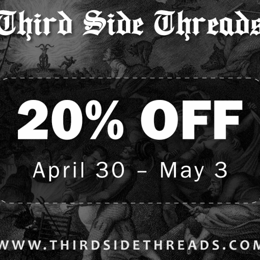 From April 30th through May 3rd, customers can receive 20% off all clothing and accessories at Third Side Threads. Browse our large selection of Satanic products or customize your own! www.thirdsidethreads.com