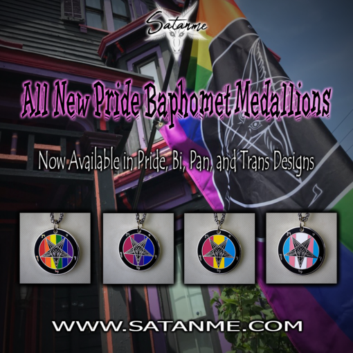 All New Pride Baphomet Medallions! Now Available in Pride, Bi, Pan, and Trans Designs! Wear your colors with Pride! Order now from Satanme