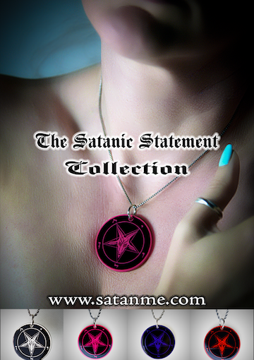 The Satanic Statement Collection are specially designed medallions unlike any other medallion made! The “Statement” aspect of this medallion is the colored metal! The Medallion’s base metal is dyed in one of our Satanme Signature colors. This creates an entirely new, modern look to the Baphomet Medallion. Not only does this medallion make a Statement on its own, but each color signifies one of the Nine Satanic Statements! Follow this link and indulge yourself!
