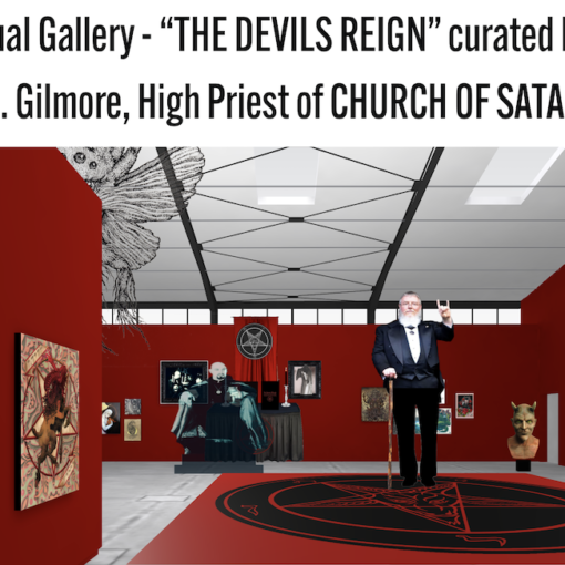 Stephen Romano, with the assistance of the Reverend Andy Howl, has created a virtual gallery based on The Devils Reign exhibition of 2016 in honor of this Walpurgisnacht: the 55th anniversary of the founding of the Church of Satan and the 20th anniversary of Peter H. Gilmore becoming its High Priest. Special thanks to Katie Doherty, for helping to maintain the integrity of the project by releasing it on her platform, BLACKFLOWERS. You may view it here.