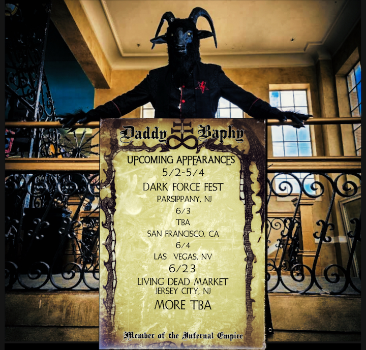 Something wicked this way comes! From regions beyond of the demons, both known and unknown, DaddyBaphy arrives this Spring and Summer in multiple appearances throughout the United States.