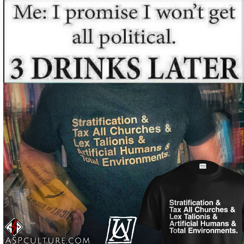 Reaffirm Dr. LaVey’s forward-thinking Five-Point Program, with the ASP & UA Pentagonal Revisionism T-Shirt. Designed by Church of Satan Magister Kevin I. Slaughter of Underworld Amusements, this adversarial adaptation of the classic “Helvetica Ampersand List” design meme concisely conveys the current thrust of Satanic advocacy, and serves as a springboard to answer the perennial question, “What do Satanists do?”