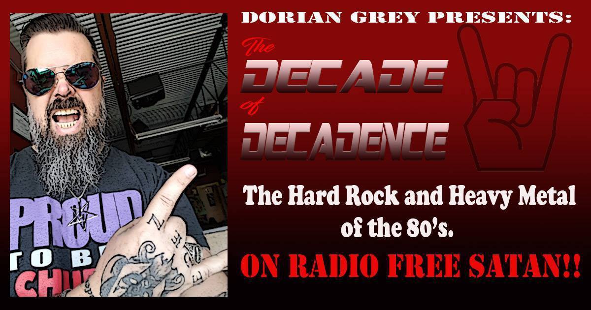 Warlock Dorian Grey and Radio Free Satan present The Decade of Decadence: a 10-part podcast showcasing the hard rock and heavy metal of the 80’s. Host Dorian Grey breaks down each year into a separate episode featuring 15 songs as well as pop trivia, punctuated by Dorian’s reflection and humor. Episode 1 is available now!