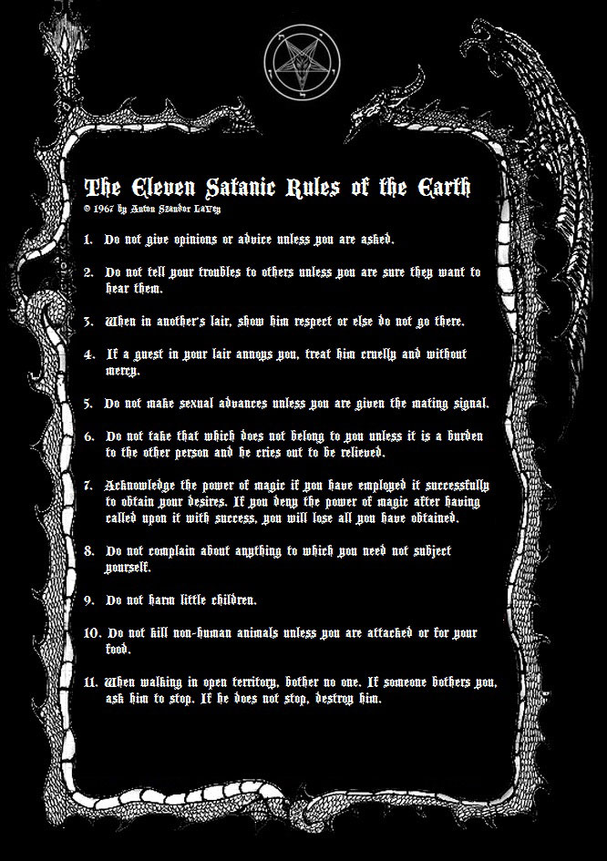 If you come across a site claiming or implying some connection to the Church of Satan, or endorsement by the Church of Satan, yet they are not linked via this site, then you, gentle browser, are being had. Caveat Emptor!