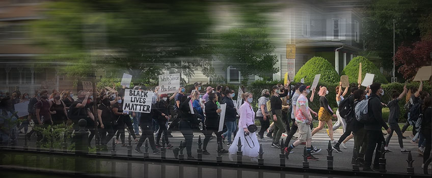 Photo by Magistra Peggy Nadramia: Peaceful demonstrators pass by The Black House on June 2, 2020.