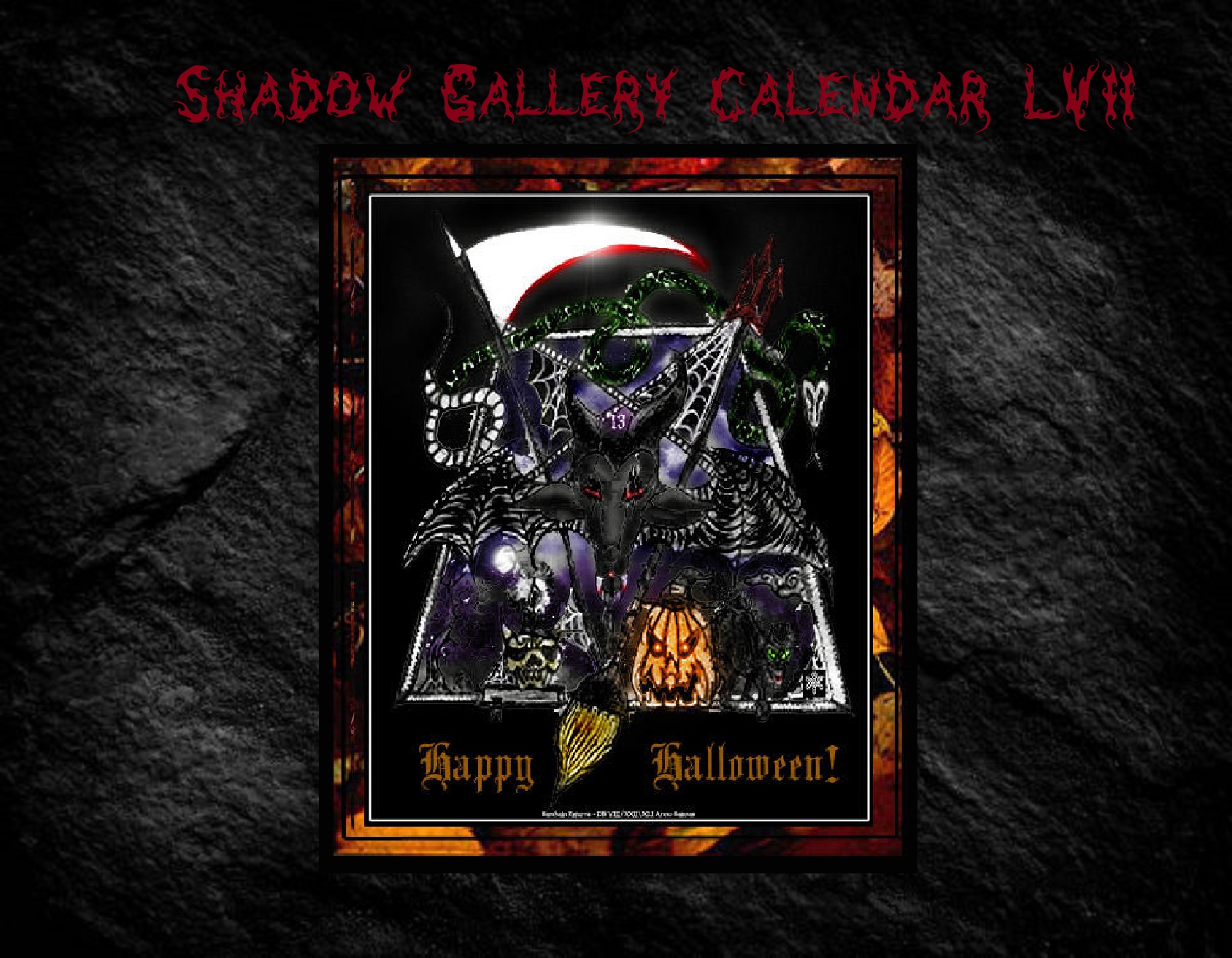 Every day is Halloween throughout The Seasons In Hell with The Shadow Gallery Calendar LVII, offering tribute to this beloved High Unholyday. Includes full & black moon phases, nefarious nativities, & diabolical dates.